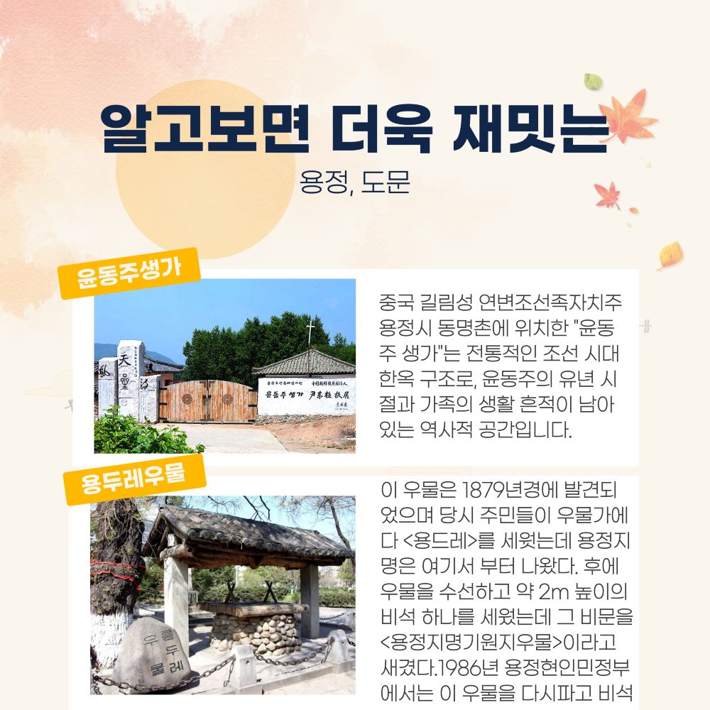 ▲ Myeongdong Village is located 15 kilometers southwest of Yongjing City, Yanbian Korean Autonomous Prefecture, Jilin Province, China. Formed between 1899 and 1905, it is also the location of Yun Dong-ju's birthplace.
