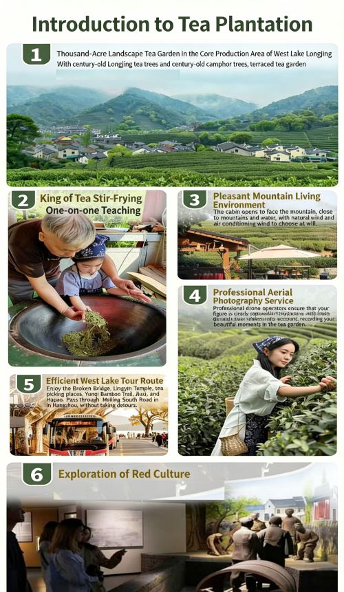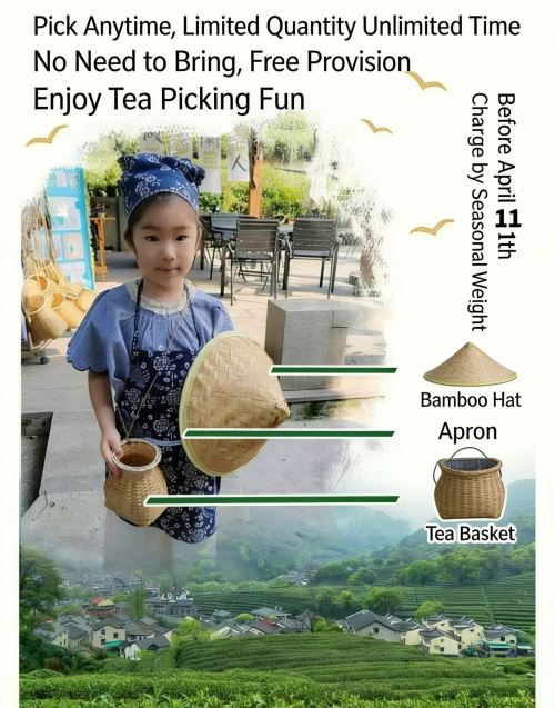 Inclusions: Experience tea picking and roasting, tea tasting (includes 1 cup of West Lake Longjing tea, tea snacks, tea-picking attire, tea basket, and bamboo hat).