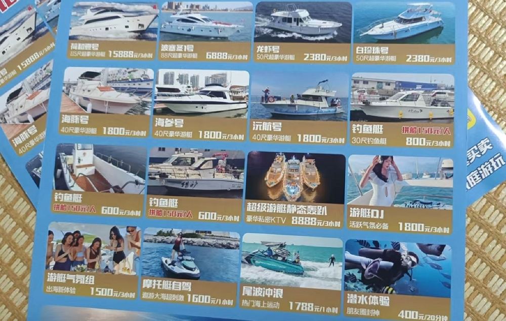 2. Entertainment: Sightseeing, water slides, swimming pool, driving experience, seagull feeding, KTV, yacht models (additional charge), DJ atmosphere team (additional charge), jet ski (additional charge)