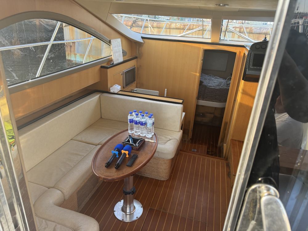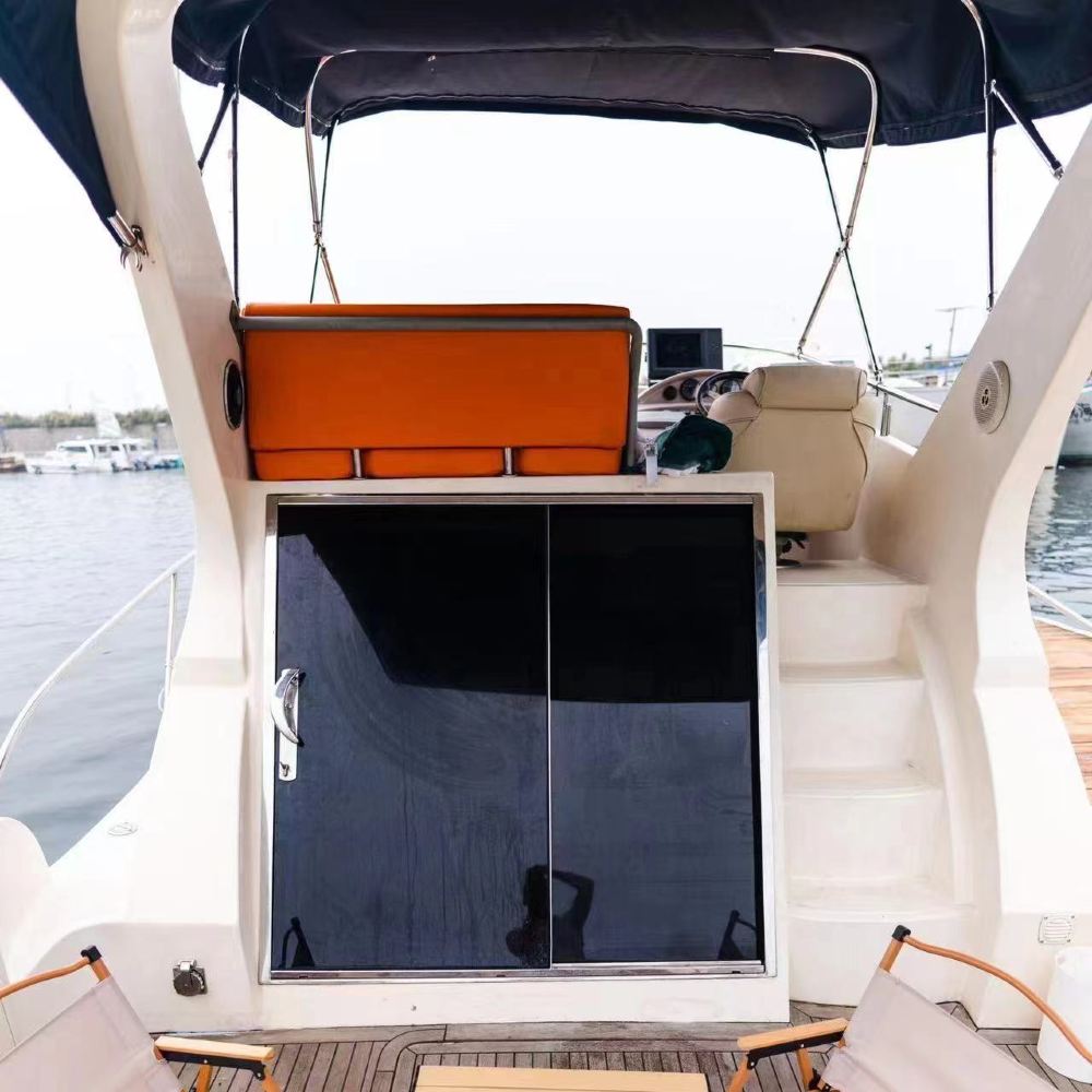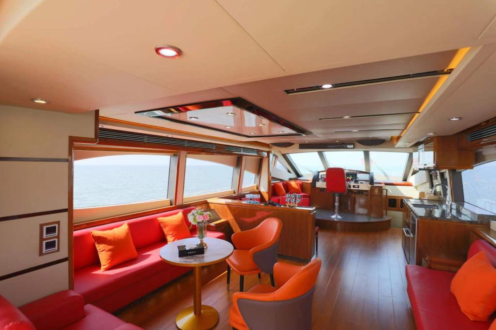 Three-level double-decker flybridge yacht with air conditioning, toilet, bed, sofa, and sound system. Complimentary water, beverages, and fruit provided! Official marina with full ID documentation.