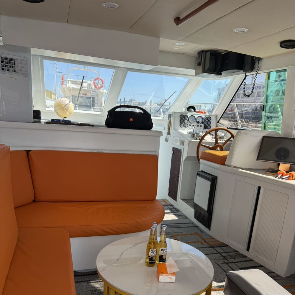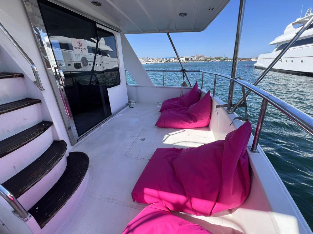 13-meter double-decker flybridge yacht with air conditioning, toilet, bed, sofa, and sound system. Complimentary water, beverages, and fruit provided! Official marina with full ID documentation.