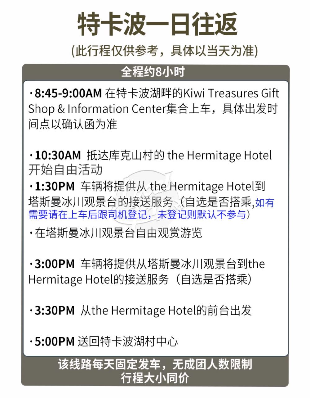Daily departures with no group size restrictions