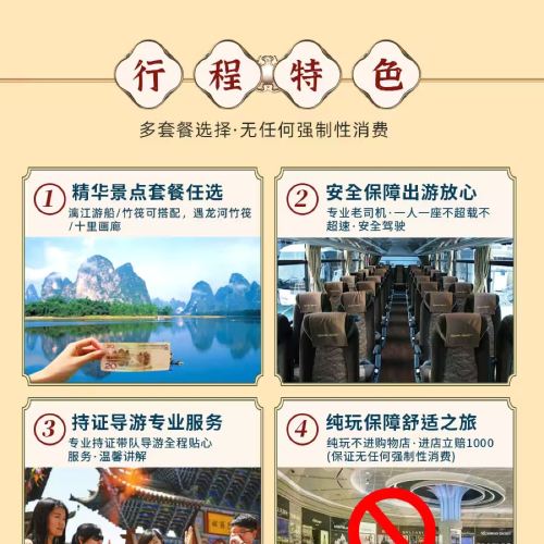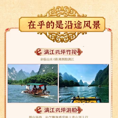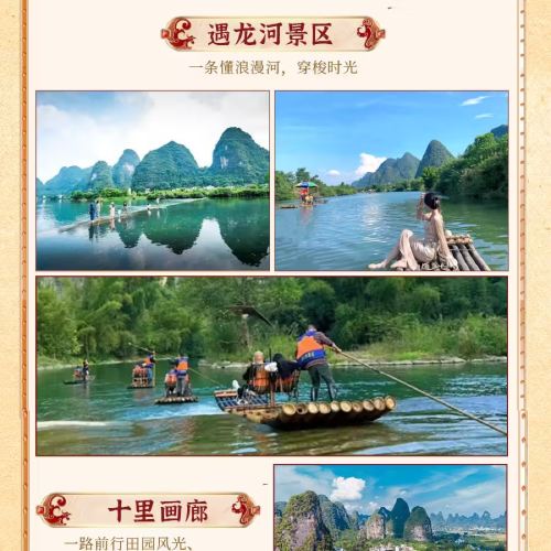 Package A: Li River Scenic Area 3-star boat (Xingping section) 20 CNY background photo spot + Xingping Ancient Town + Yulong River 8-person bamboo rafting + Shili Gallery;