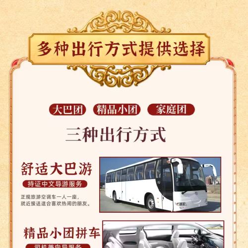 3. Small group of 2-8 people: A genuine small group with no more than 8 people per vehicle. No separate guide is arranged, and the service is provided by the driver who also serves as the guide. We guarantee no shopping stops, no forced consumption, and no onboard promotions!
