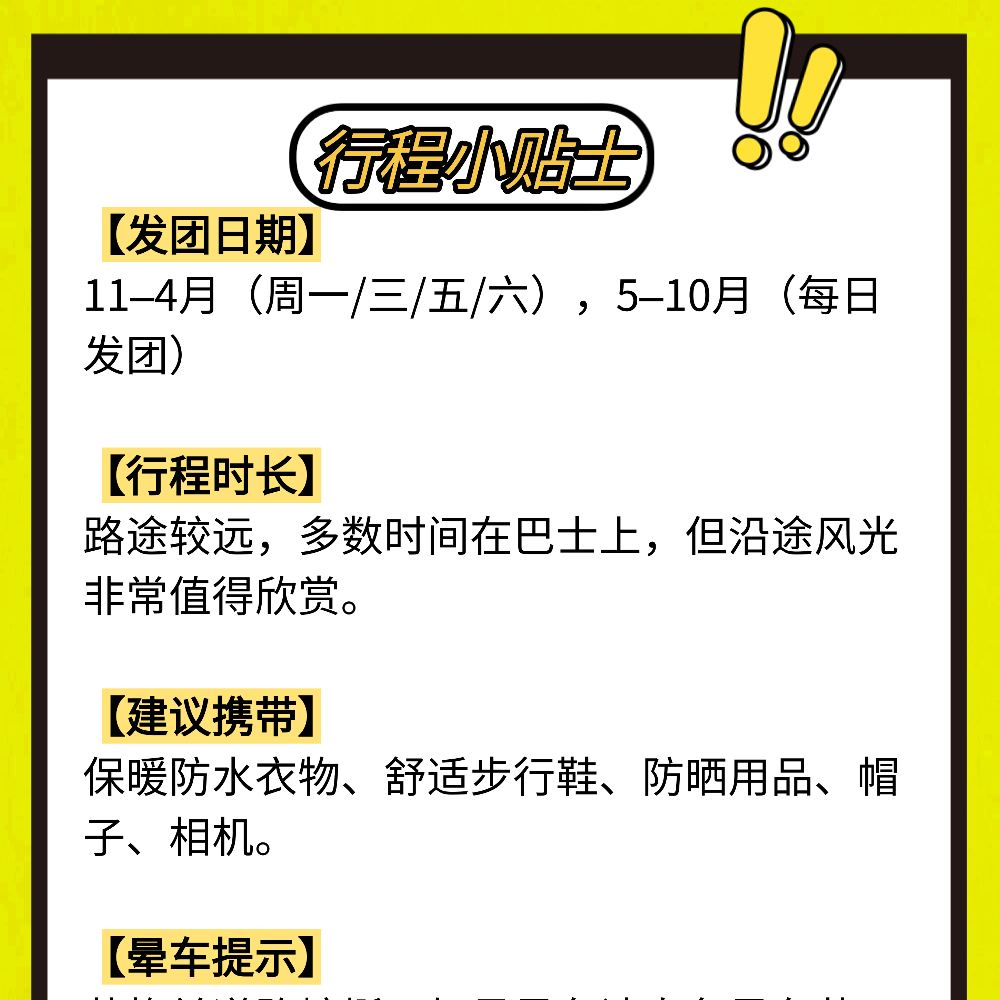 2: The journey is long, and most of the time will be spent enjoying the scenic views from the comfortable bus.