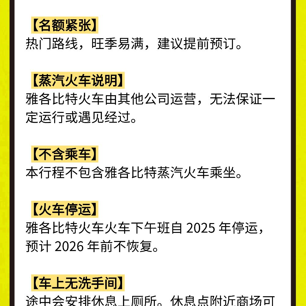 Tip 11: The afternoon departure time slot for the steam train has been discontinued in 2025, and this train service will not be available until 2026.