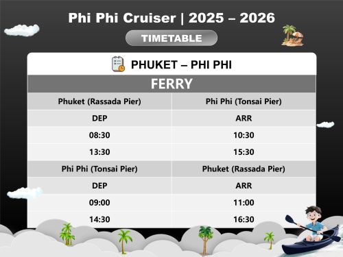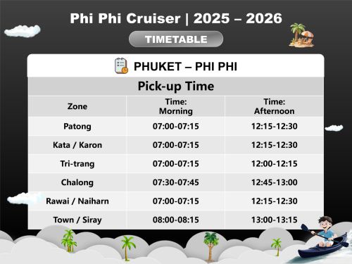 - For Round-trip ticket between Phuket and Phi Phi, we can provide pick-up and drop-off service between your hotel in Phuket and Rassada Pier.