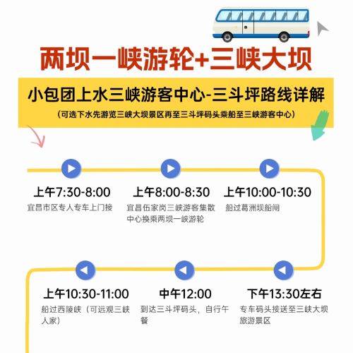 Itinerary Option 2 Downstream Experience with Water Level Drop: In the morning, pick up from any designated location in Yichang city - visit the Three Gorges Dam Tourist Area including Tanziling Scenic Area, 185 Observation Deck, and the River Closure Memorial Garden. Lunch on your own in the afternoon. Transfer by private vehicle to Sandouping Pier to board the Two Dams One Gorge cruise - sail through Xiling Gorge, view the Three Gorges Tribe (external viewing only) - pass through Gezhou Dam Ship Lock to experience "water level drop" - cruise along the Yangtze River, arrive at Wujiagang Three Gorges Travelers Center - drop off at designated location in Yichang city.